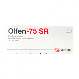 Olfen 75 mg SR 30 Tablets is a sustained-release anti-inflammatory medication containing diclofenac sodium. It is used to relieve pain, swelling, and inflammation in conditions affecting joints, muscl..