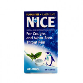 Nice lozenges contians active ingredient of menthol 5.5 mg per lozenges temporarily suppresses/ relieves coughs due to minor throat and bronchial irritation from a cold or inhaled irritants occasional..