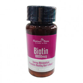 Radiant Nutra Biotin delivers a potent dose of 10,000 mcg of biotin (Vitamin B7) in each tablet to support the health of your hair, skin, and nails. This high-strength supplement is designed to help p..