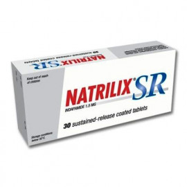 Natrilix SR 1.5 mg is a tablet containing indapamide a diuretic or water pill. It is used to treat high blood pressure or hypertension and swelling or edema caused by heart, kidney, liver, or lung dis..