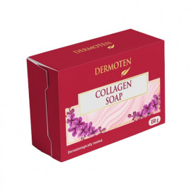 Dermoten Collagen Soap is a transparent medicated soap that contains 18 active ingredients, including collagen, which helps hydrate and cleanse the skin. With its glycerin-rich formula and sodium stea..