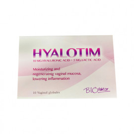 Biofaktor Hyalotim 10 mg Hyaluronic Acid + 5 mg Lactic Acid is a specially formulated vaginal tablet designed to promote intimate health and comfort. This product combines the hydrating benefits of Hyaluronic Acid with the soothing properties of Lactic Acid to help restore and maintain the natural balance of the vaginal environment. Ideal for women experiencing vaginal dryness, discomfort, or after hormonal changes.