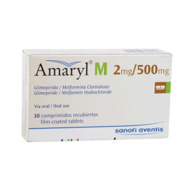 Amaryl 2 / 500 mg 30 Tablets Glimepiride Metformin Glimepiride is a sulfonamide hypoglycemic agent that acts on the beta cells of the pancreatic cells thus increasing the secretion of the insulin by t..
