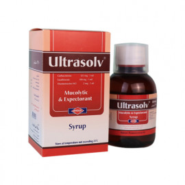 Ultrasolv is a new and unique formula of potent ingrediants for liquefying expelling mucus and alleviating cough. Each 5 ml of Ultrasolv Syrup contains: Carbocysteine 125 mg Cuaiphenesin 100mg Oxomema..