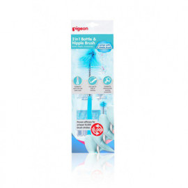 Pigeon’s 2 in 1 Bottle & Nipple Brush to clean bottles, teats, and all accessories. Features an easy grip handle for ease of washing, with proven efficacy for at least 10,000 brush strokes..